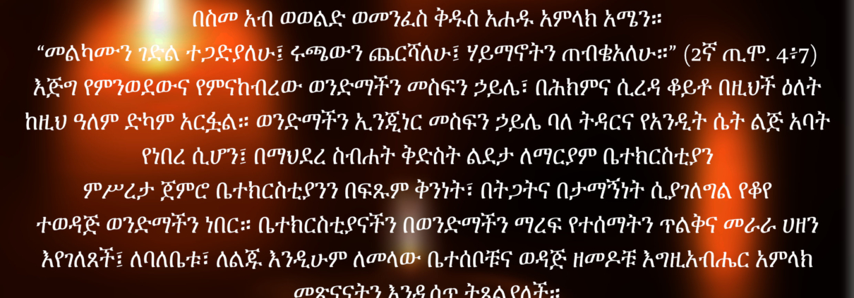 የወንድማችንን ነፍስ በአብርሃም በይስሐቅና በያዕቆብ እቅፍ ያኑርልን።