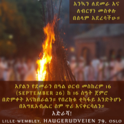 እያልን የደመራን በዓል ዐርብ መስከረም 16 (september 26) ከ 16 ስዓት ጀምሮ በድምቀት እናከበራልን። የበረከቱ ተካፋይ እንድትሆኑ በእግዚአብሔር ስም ጥሪ እናቀርባለን።